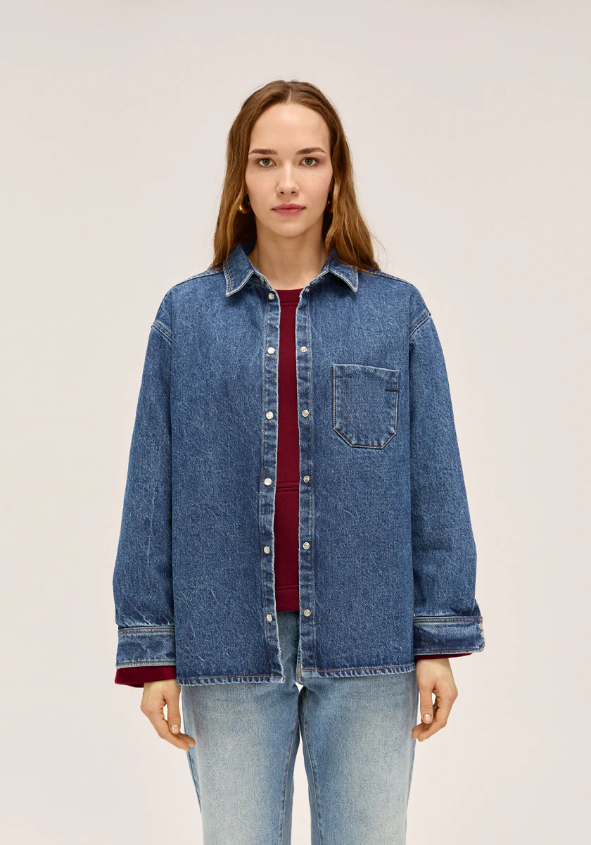 AGORA blue denim, la chemise qui traverse les styles. Confectionnée en coton 100%, elle se porte indifféremment en chemise ou en surchemise selon vos envies. Son denim iconique apporte une allure décontractée et intemporelle, tandis que ses pressions nacrées signent un détail précis. AGORA conjugue caractère et polyvalence.