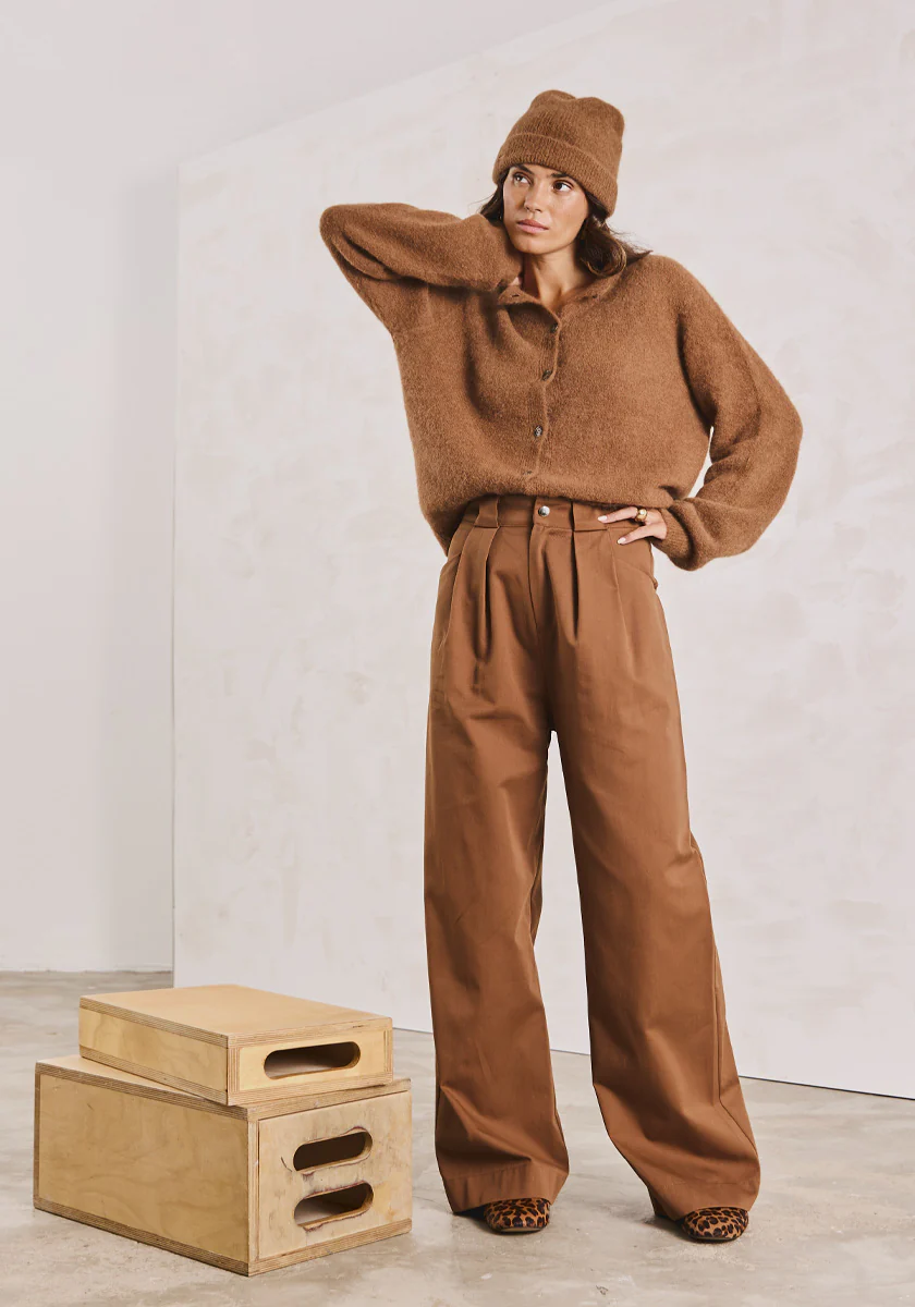 MEDIDO, le pantalon large qui allie confort et allure. Ce nouveau coloris toffee met en valeur ses deux plis Ă lâavant et son jeu de dĂ©coupes aux poches, pour une silhouette Ă la fois structurĂ©e et fluide. Une piĂšce indispensable pour la saison.