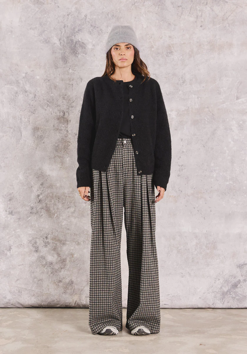 PAULO, le pantalon à petits carreaux qui allie volume et fluidité.