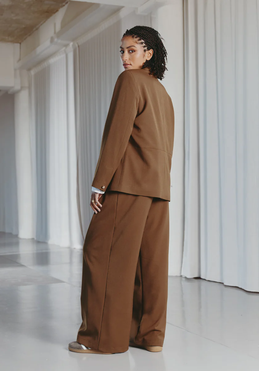 BAIA, l'incontournable blazer réinventé par SL. C'est la veste chic et facile à associer, au coloris Tabac profond et lumineux, on l'emportera partout du matin au soir. Elle structure la silhouette et le look tout entier, en lui apportant une touche chic avec ses jolis poignets boutonnés.